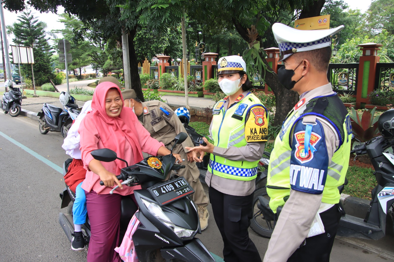 Satlantas Polres Metro Bekasi Kota saat melakukan sosialisasi Operasi Keselamatan Jaya 2023