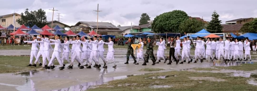 Pasukan Pengibar Bendera Pusaka(Paskibraka) Kabupaten Humbahas 2023 pada Penurunan Bendera Merah Putih Peringatan HUT Ke-78 Kemerdekaan RI, Brenda sesilia lumban gaol (SMA N 1 Baktiraja) pembawa baki, Penurunan bendera Rivaldi Sinaga (SMA Swasta HKBP Lingtongnihuta) Ridwan Marisi Situmorang ( SMA N 2 Doloksanggul) dan Pandu LC Lumbantoruan ( SMA Swasta HKBP Lingtongnihuta) serta Jhon Denik Siringoringo (SMA N 2 Lintongnihuta) sebagai Komandan Pleton. (AS)