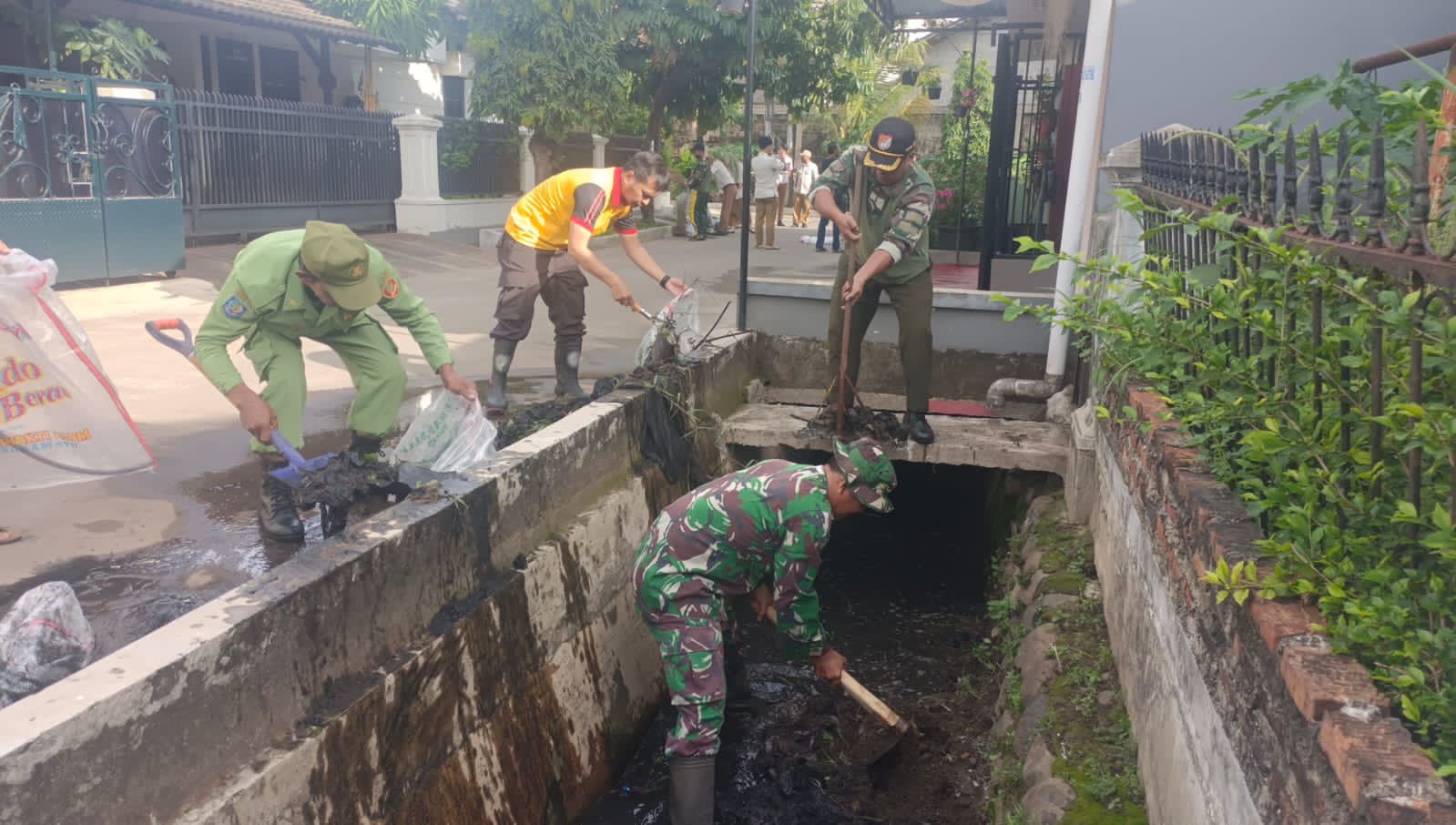 Koramil 04/Jatiasih Karya Bakti Bersihkan Parit dan Gorong-gorong