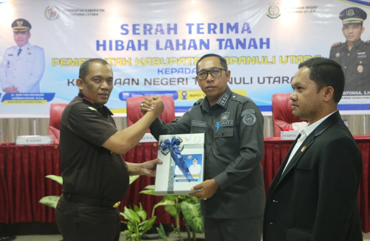 TAPANULI, MEDIASI.COM – Pemerintah Kabupaten Tapanuli Utara (Pemkab Taput) secara resmi menyerahkan hibah tanah milik Pemkab kepada Kejaksaan Negeri (Kejari) Tapanuli Utara untuk sarana perkantoran, Kamis (23/10/2025).