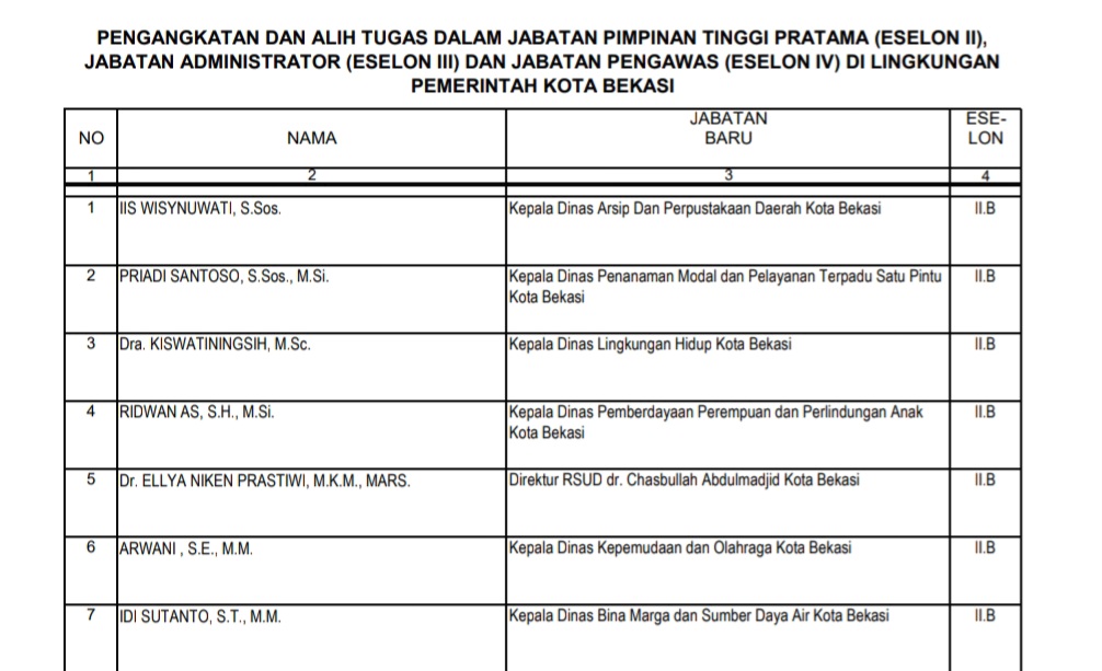 Klik disini daftar 250 pejabat struktural Pemerintah Kota Bekasi yang dilantik pada Rabu (29/10/2025)