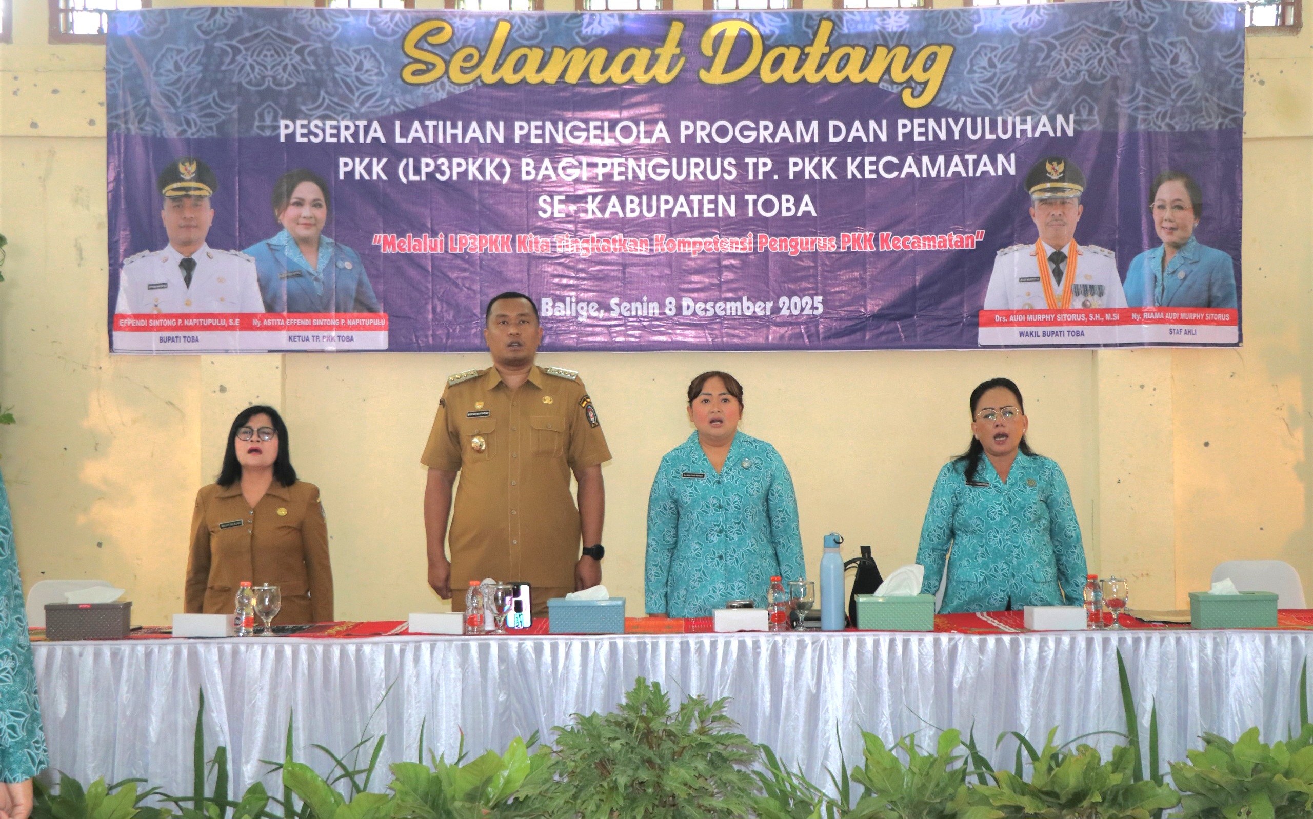 TOBA, MEDIASI.COM – Tim Penggerak PKK Kabupaten Toba bersama Dinas Pemberdayaan Masyarakat Desa, Perempuan dan Perlindungan Anak Latihan Pengelola Program dan Penyuluhan PKK (LP3PKK) bagi Pengurus TP PKK Kecamatan se-Kabupaten Toba.