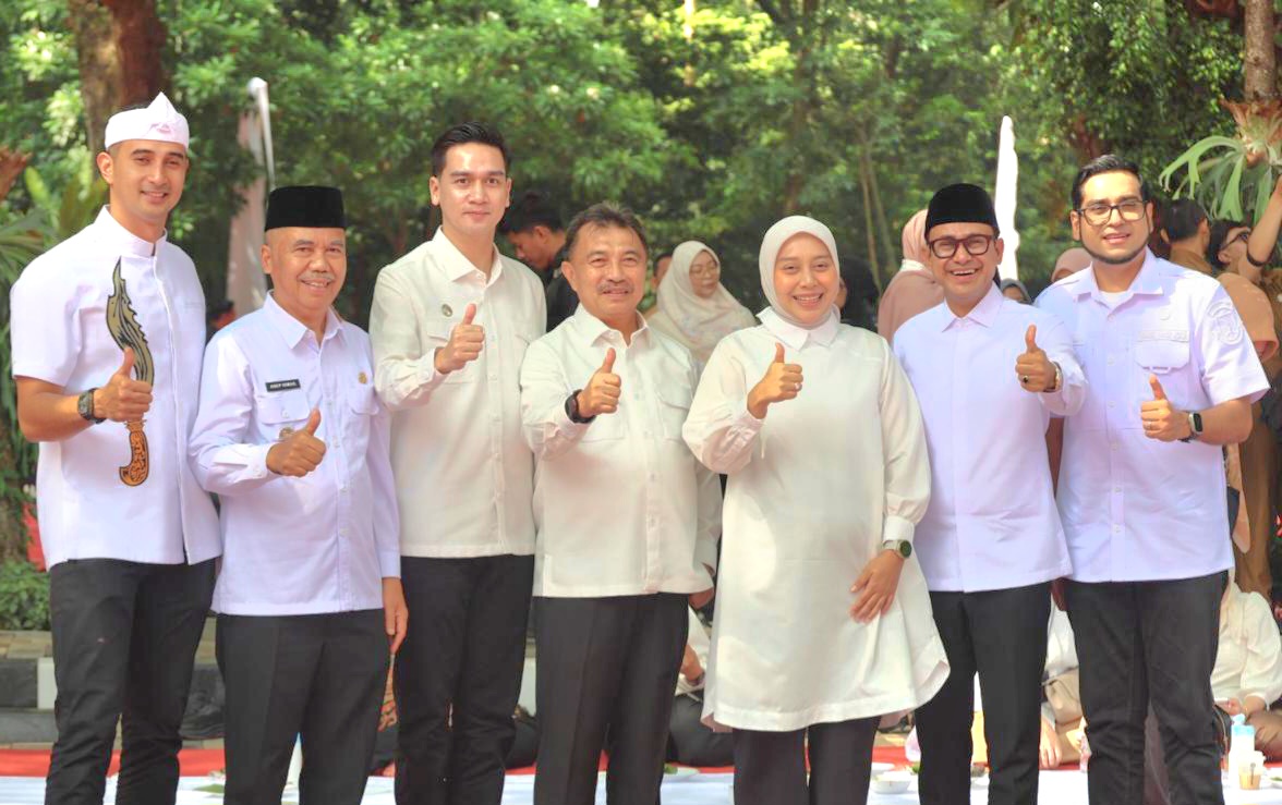 BANDUNG- Wakil Wali Kota Bekasi, Abdul Harris Bobihoe hadiri halal bihalal Idulfitri dengan Gubernur Jawa Barat Dedi Mulyadi dan seluruh kepala daerah di halaman Gedung Sate Bandung, Senin (30/3/2026).